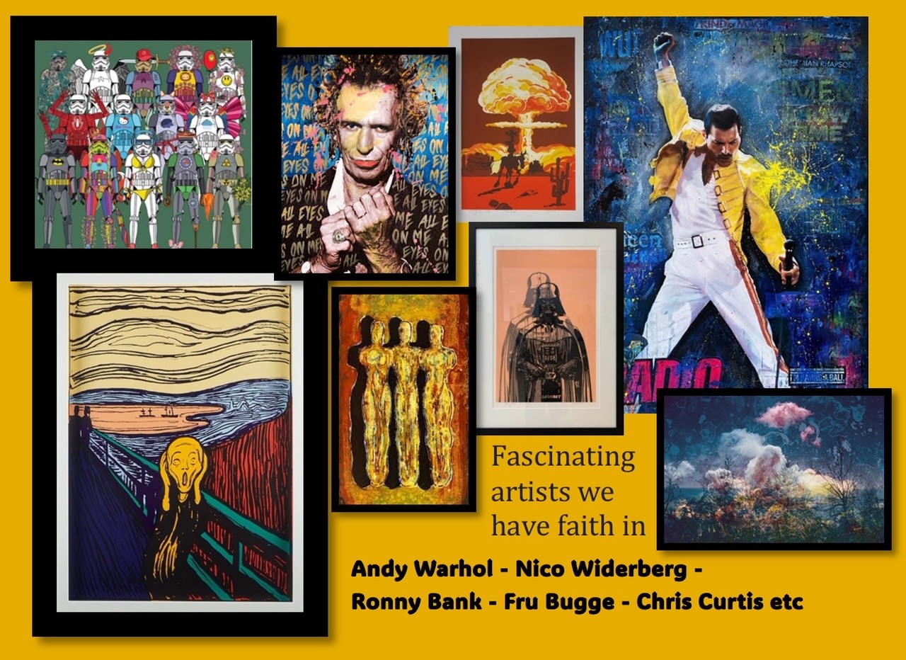 There are several fascinating artists that we believe can increase in value in the future, and some that we simply think create new or exciting art that we simply like. Some quite new and some established, which we would like to contribute to get more recognition. Here is a small selection from some of the works we really appreciate.